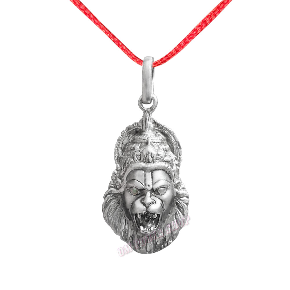 Panchmukhi Hanuman ji Raksha Silver pendant made of 925 pure silver. Panchmukhi Hanuman, also known as Panchamukha Anjaneya, is a form of Lord Hanuman with five faces. The term "Panchamukhi" translates to "five-faced" in Sanskrit. Each face of Panchamukhi Hanuman represents a different aspect or form of Lord Hanuman and is associated with a particular deity or power. Hanuman (facing east): This face of Hanuman represents bravery, fearlessness, and protection. It is associated with Lord Hanu..