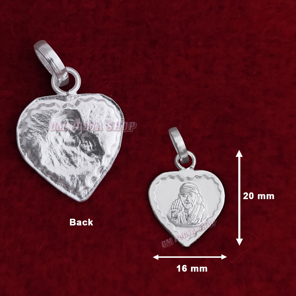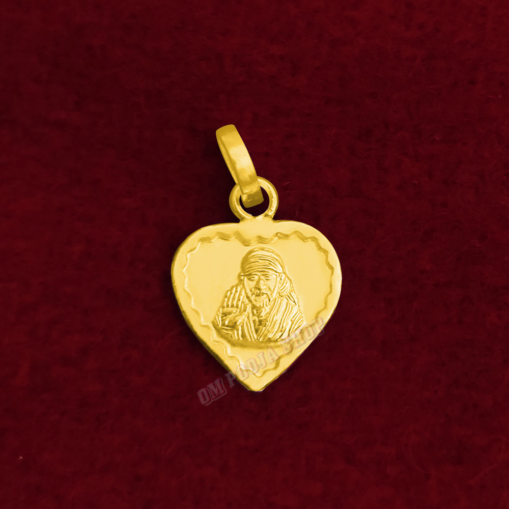 Sai Baba Heart Shape Locket in Pure Silver & Pure Gold - Size: 16x20 mm