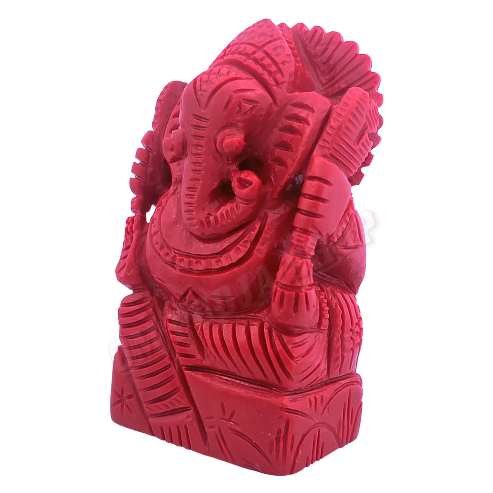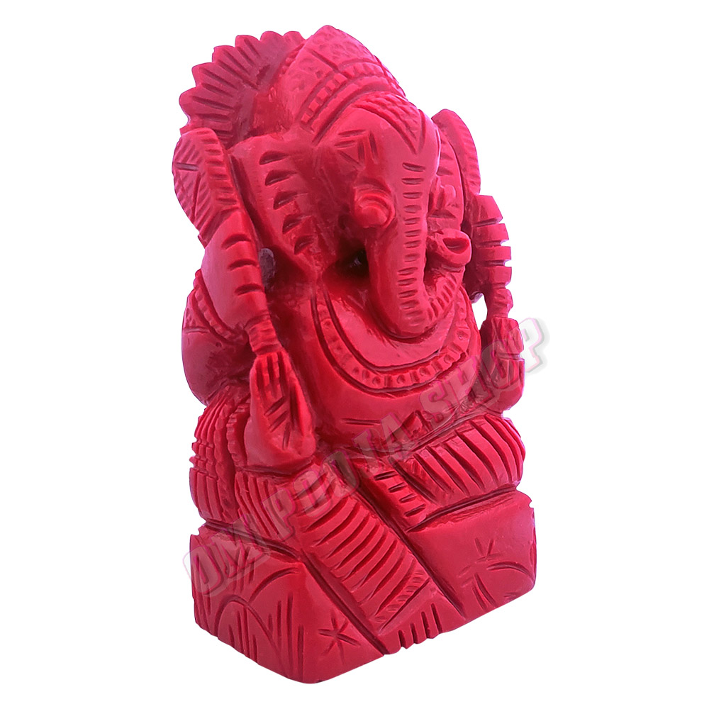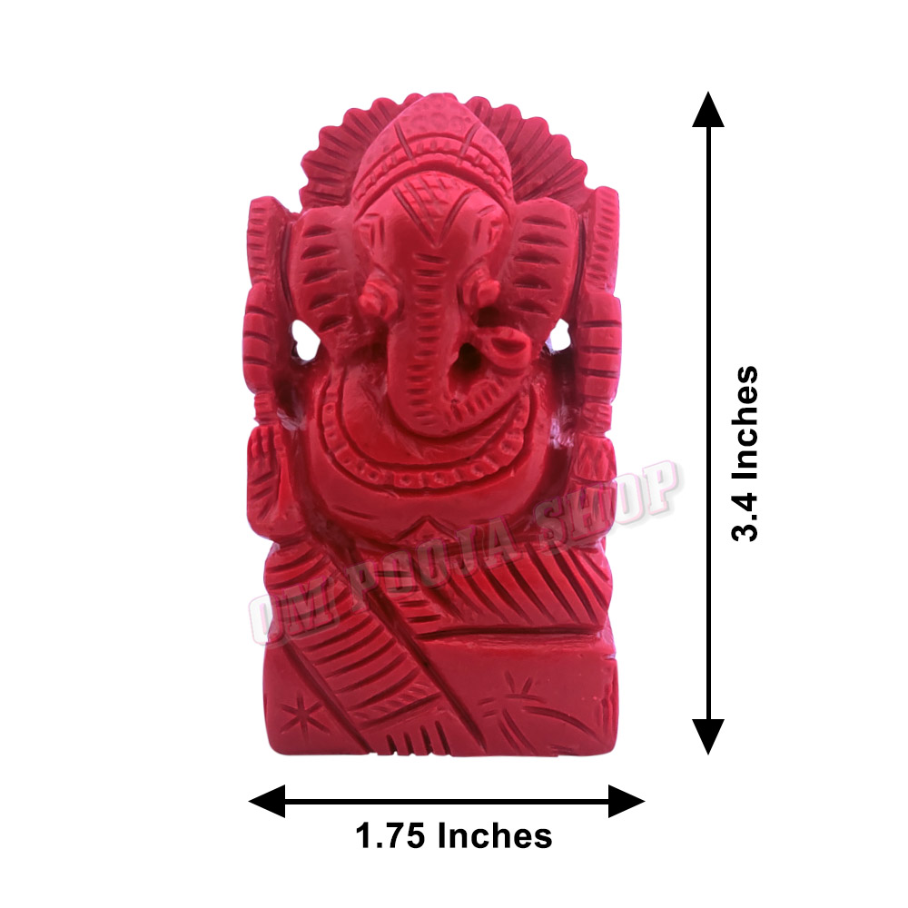 Red Coral Lal Moonga Ganesha Idol - 3.5 Inch - 165 Gms