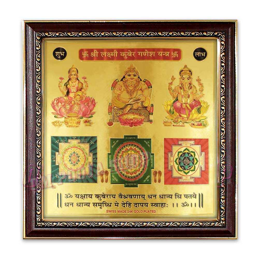 Shree Lakshmi Kuber Ganesh Yantra – 24K Gold Plated Paper
