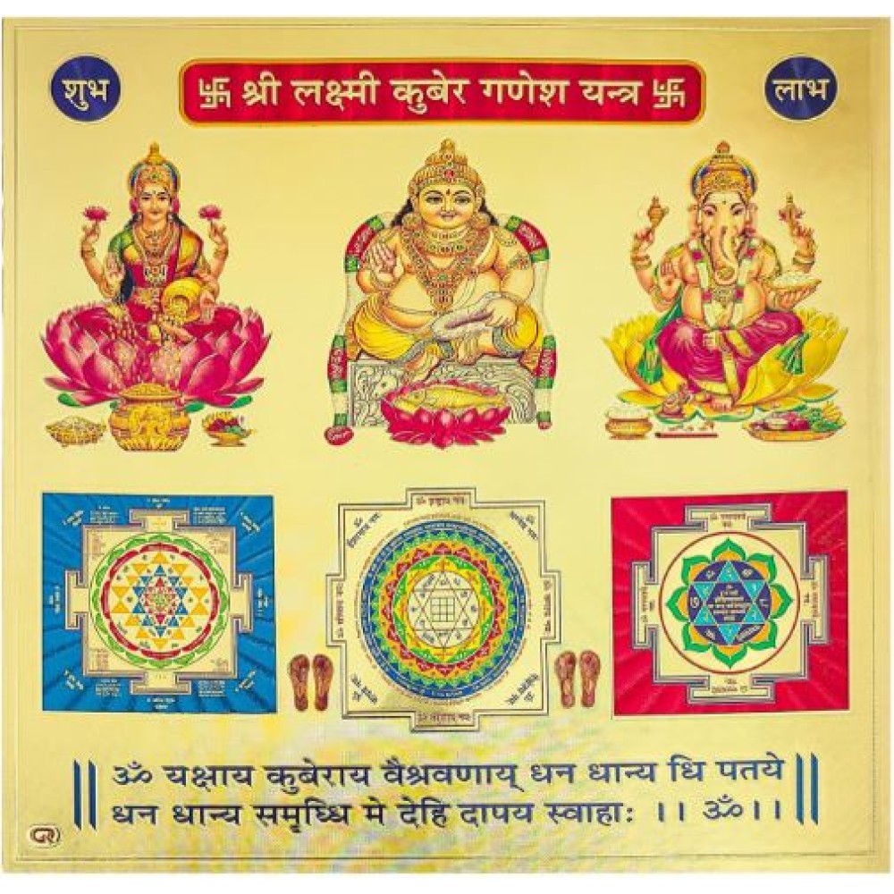 Shree Lakshmi Kuber Ganesh Yantra 24k Gold Plated Paper - 9 inch