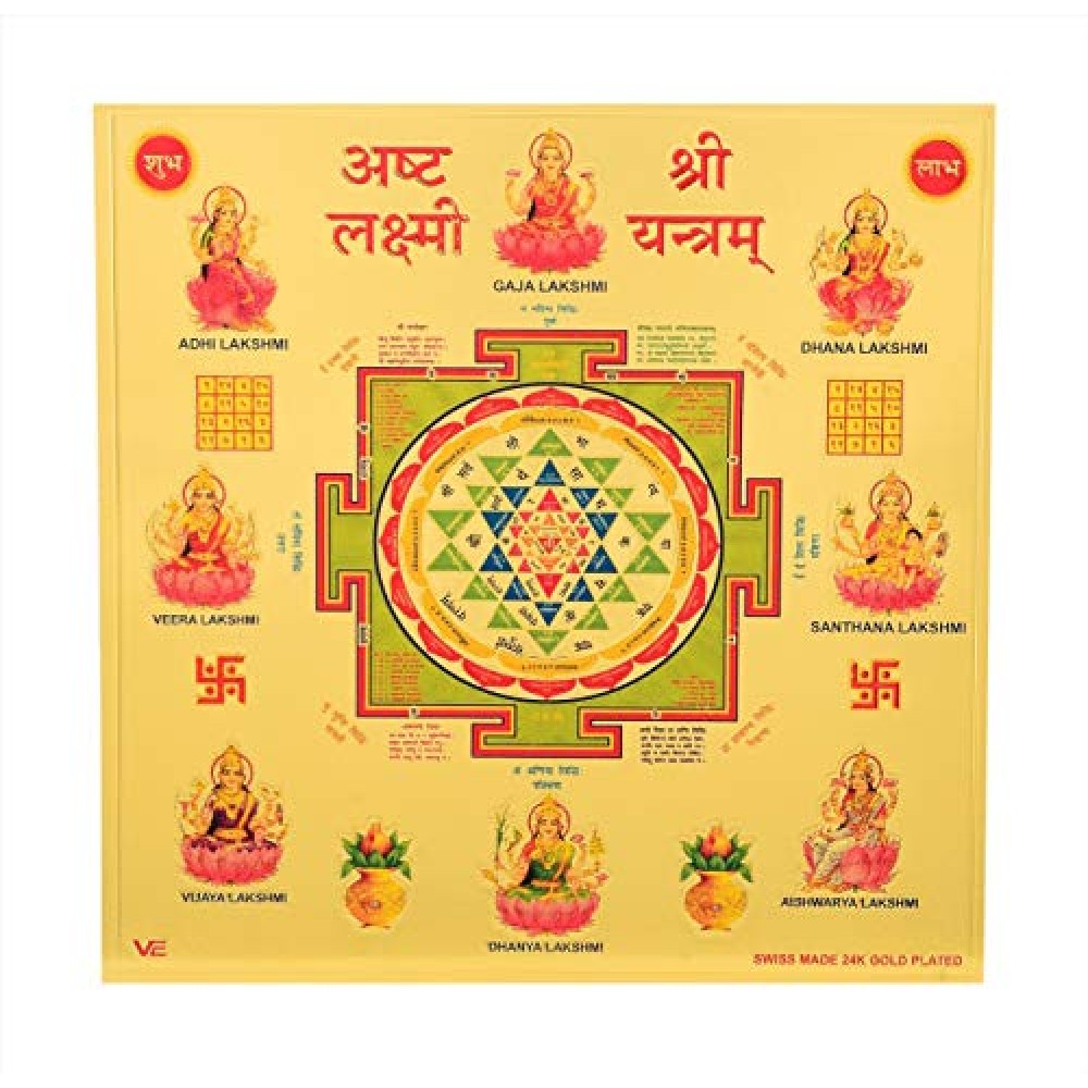 Shree Ashth Laxmi Shree Yantra 24k Gold Plated Paper - 9 inch