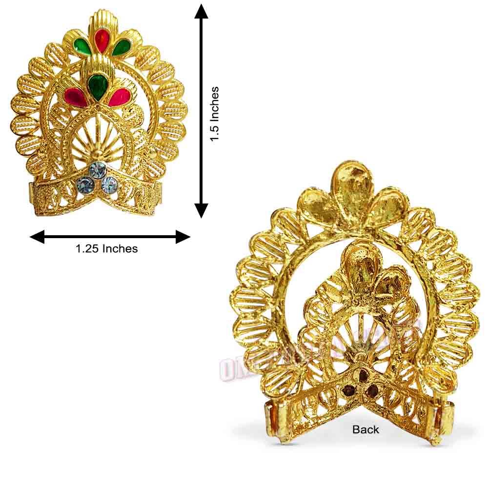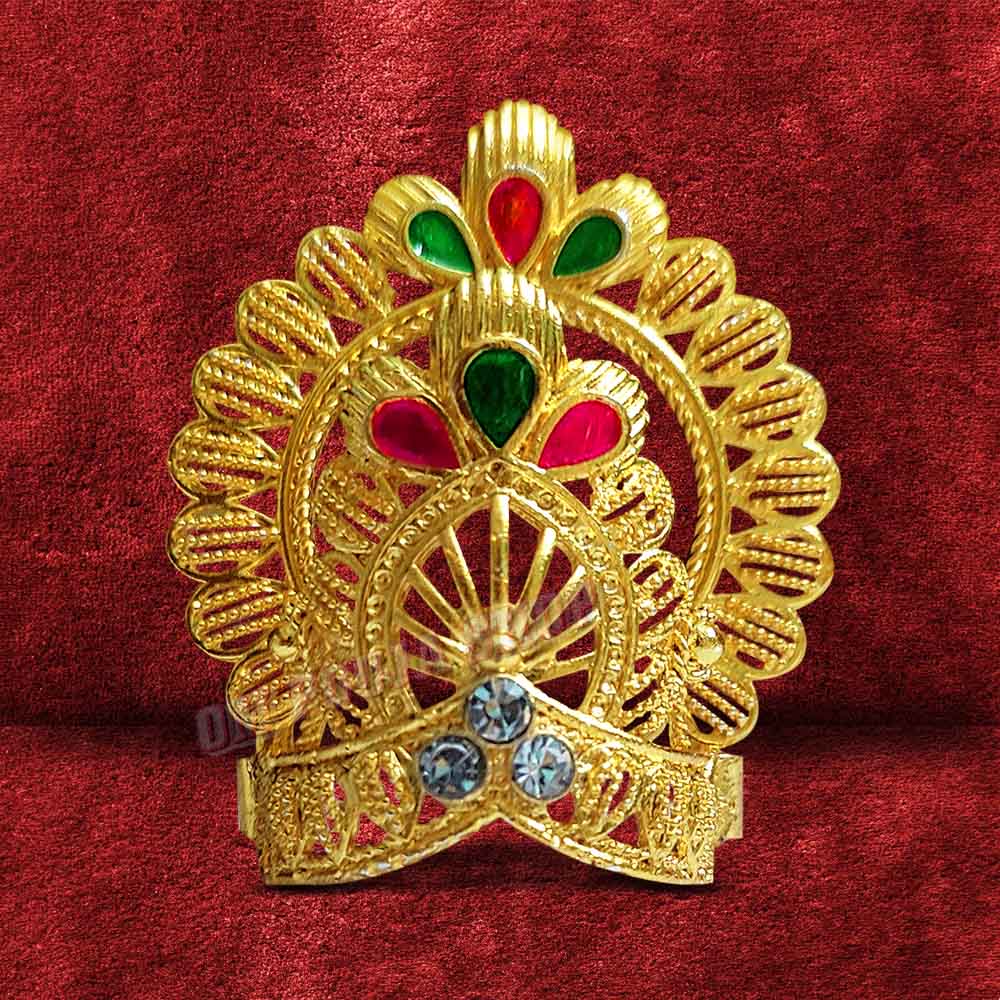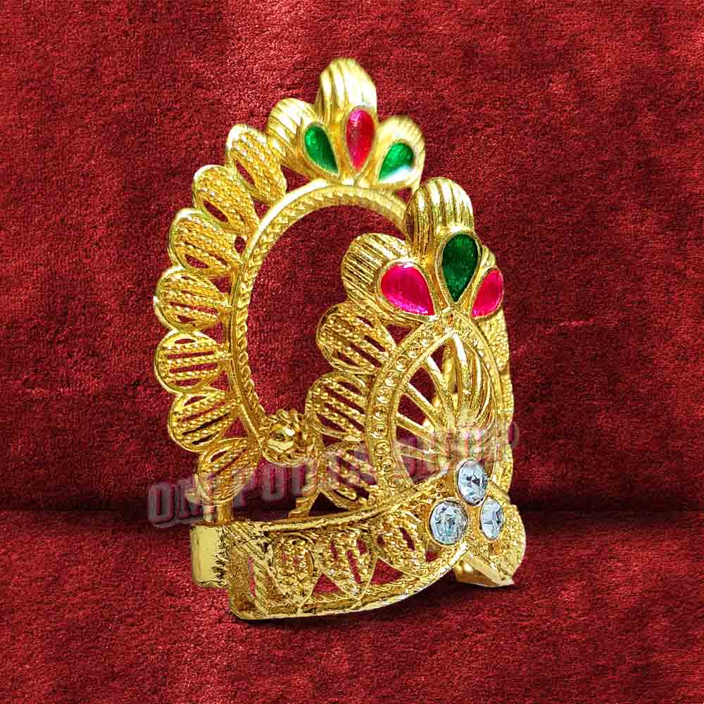 This crown can be placed directly on the head of the idol of the deity. If it is loose, it can be tightened by sticking it with a thread or wet flour or wax.
