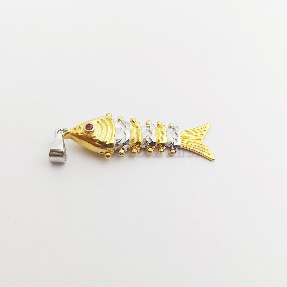 Beautiful Flexible Movable Fish Pendant is made in 925 pure Sterling Silver with 24k Gold plated and diamond studded on it. This eye catching pendant can gift your love one.