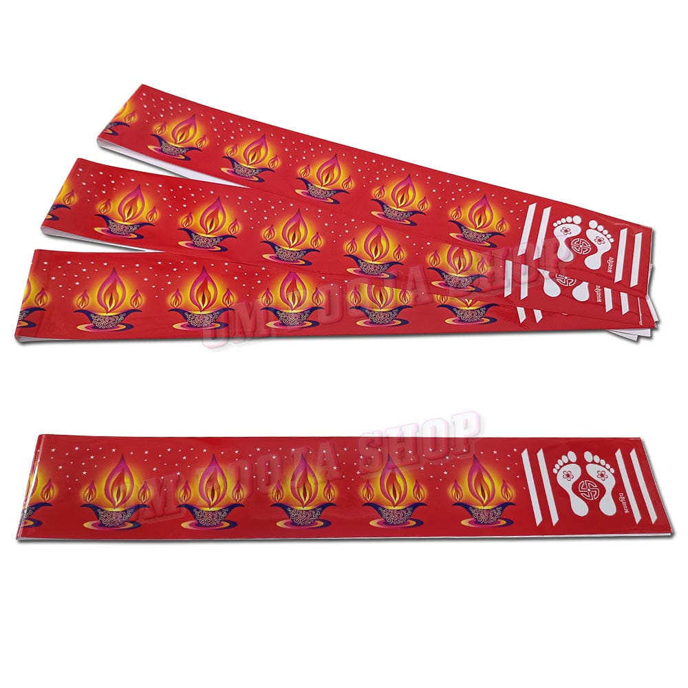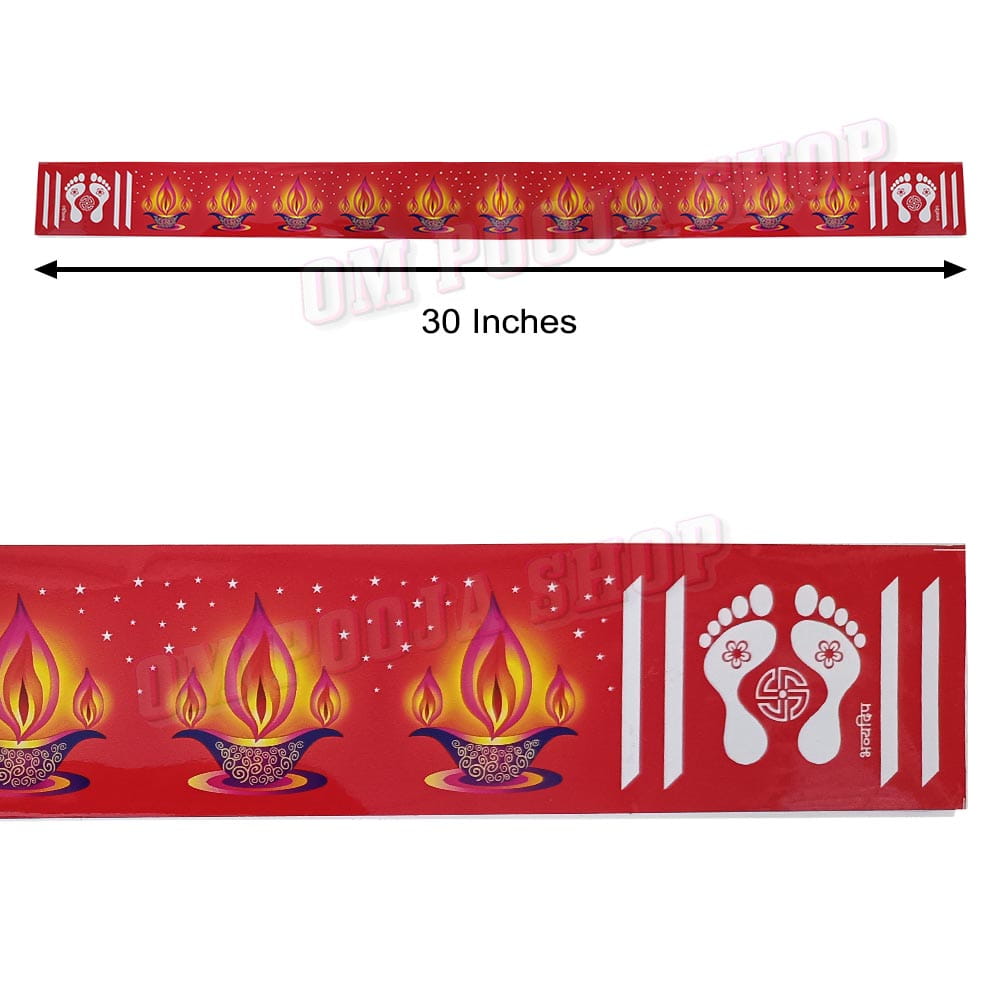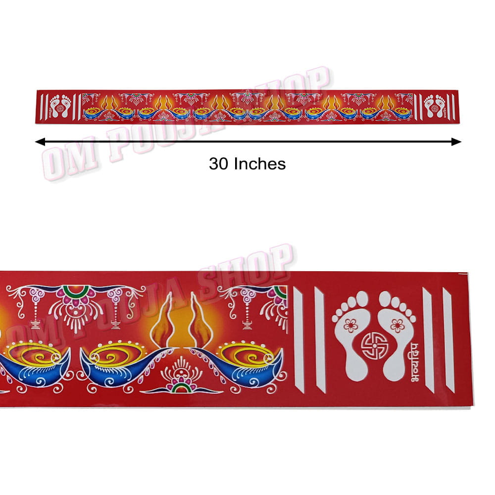 Door Entrance Diwali Rangoli Sticker with Charan Paduka for Door Entrance Decoration, This Door Entrance Diwali Rangoli Sticker is made of waterproof and non-toxic meterial. It can be easily pasted on walls and doors entrance. These stickers decorate your home's and temple's door entrance just in minutes.Dimensions: 29 inches (L) x 2.5 inches (W) (73.5 x 6.3 cm) approx..