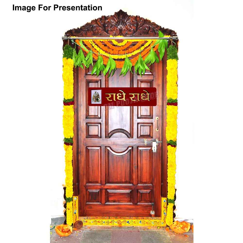 Radhe Radhe Wooden Red Door Patti – Divine Entrance Wall Hanging