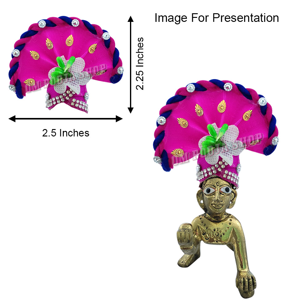 Great Looking of Indra Pagadi Feta Mukut Crown for Gopal idol. The concept of the crown originates from a cap, turban, or more formal metallic crown that was decorated with jewels. This handmade turban pheta is made of good quality cloth. It can be easily worn on Krishna's head.
