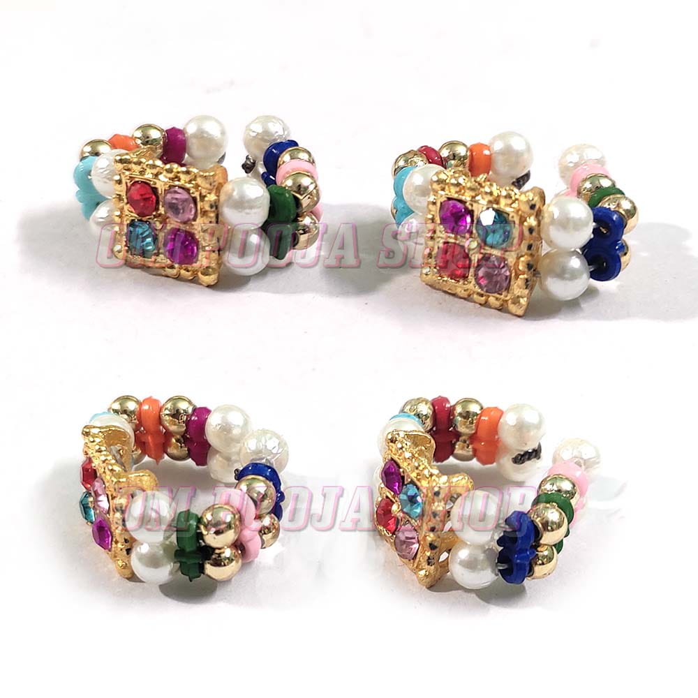 Enhance the divine beauty of Shri Krishna / Laddu Gopal Ji with this exquisitely crafted Pearl & Multicolor Stone Bajuband Armlet Set. Designed especially for Thakur Ji Shringar, these bajubands feature a graceful combination of lustrous pearls, colorful beads, and sparkling stones set in a golden-tone base, adding royal charm to your deity.