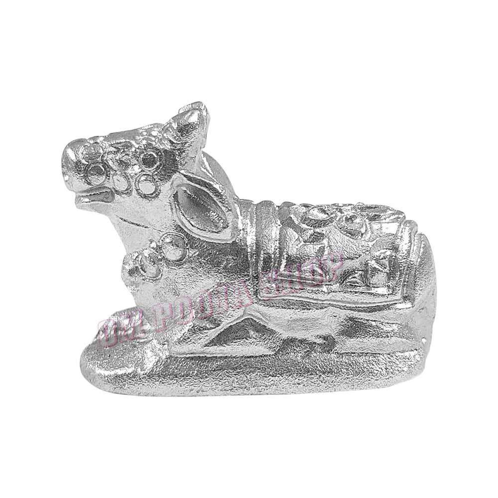 Handcrafted Nandi Statue is made of pure solidified mercury (Parad) with 8 Sanskars (8 stage of Purification done as per Parad Sanmhita). Nandi is usually depicted as a bull which also serves as the mount to the god Shiva. According to Saivite siddhantic tradition, he is considered as the chief guru of eight disciples of Nandinatha Sampradaya - Sanaka, Sanatana, Sanandana, Sanatkumara, Tirumular, Vyagrapada, Patanjali and Sivayoga Muni who were send to eight directions to spread the wisdom of Shaivism.