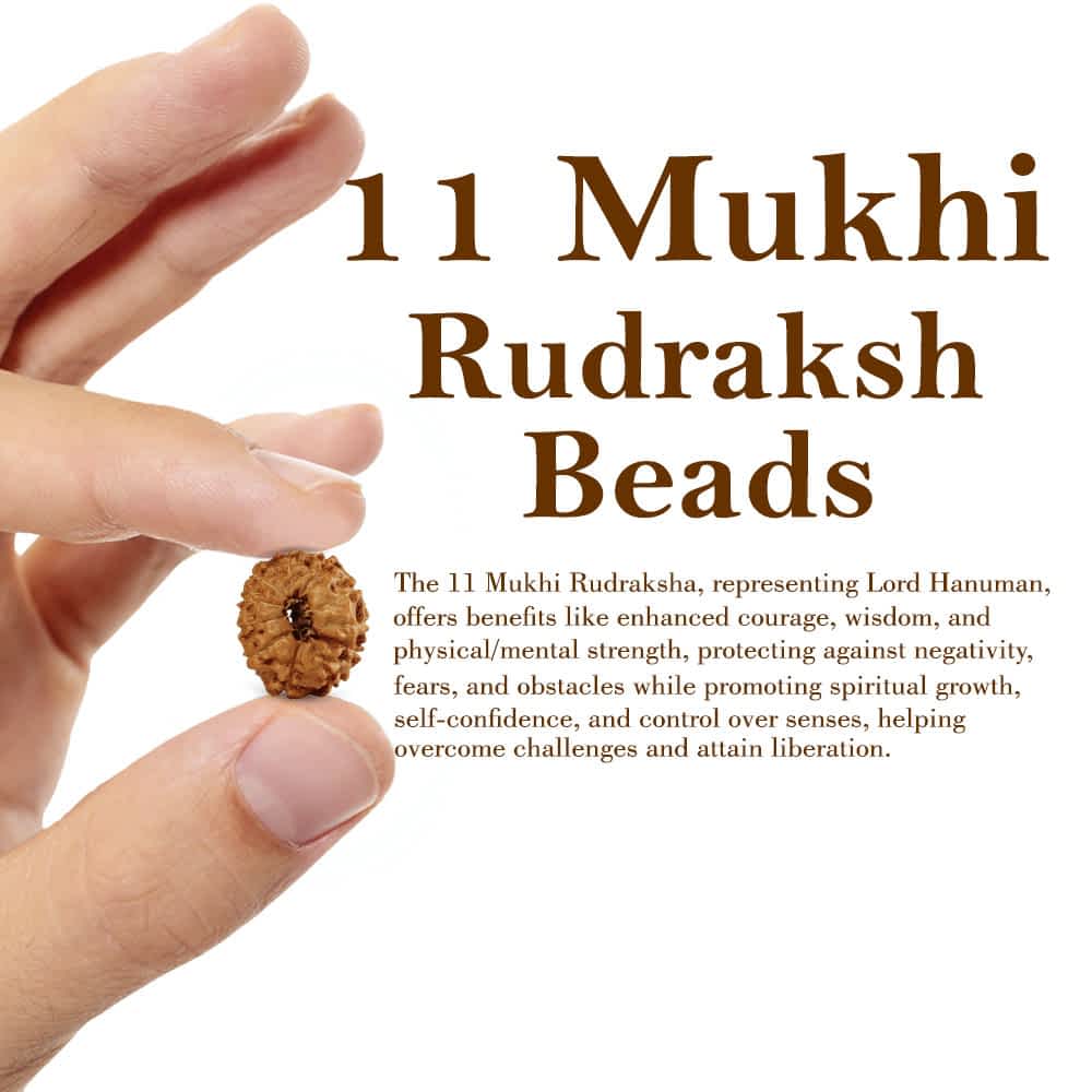 According to Astrological - Eleven Mukhi Rudraksha represents Ekadash Rudra. The eleven forms of Lord Shiva are : Ahirbhutanya, Bhav, Bhim, Chand, Kapali, Pingal, Shasta, Shumbh, Virupaksh and Vilohit and Hanuman. Hanuman is the eleventh form of Lord Shiva.