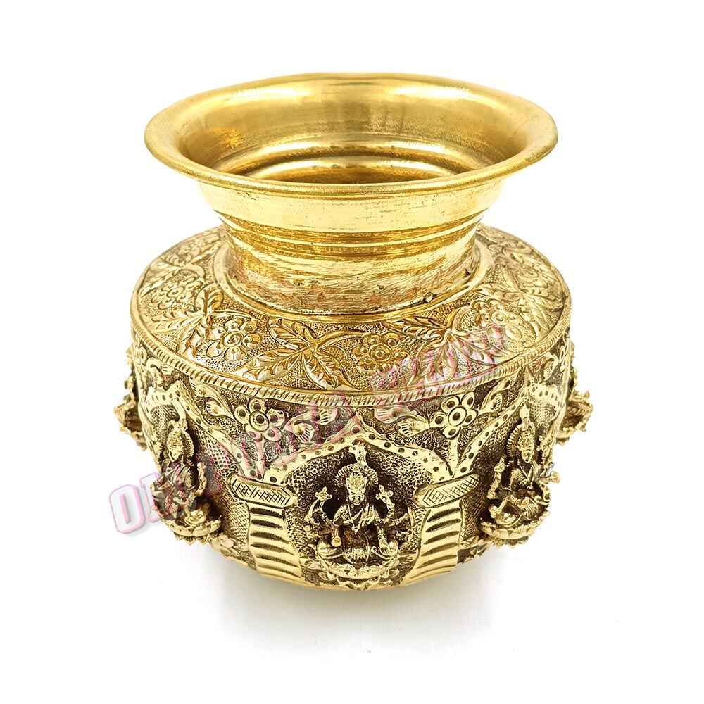 Ashtalakshmi Brass Kodam / Kalash, Bring home divine blessings with this exquisitely crafted Ashtalakshmi Brass Kodam / Kalash, featuring detailed relief carvings of Ashtalakshmi, the eight forms of Goddess Lakshmi. Made from high-quality brass, this traditional pooja vessel reflects timeless South Indian craftsmanship and spiritual elegance.