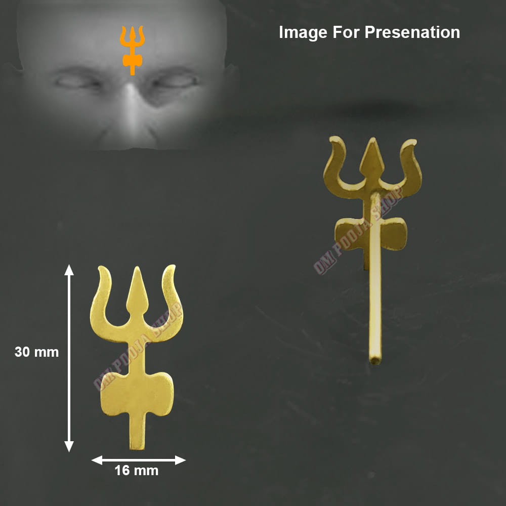 Forehead Trishul Tilak Maker Stamp in Brass - Design 3 - Size: 16x30 mm. You can easily get this Tripund Tilak Maker made of Lord Shiva's doamroo and Trishul on it. You only have to order online. And one will be delivered to your home. This Tilak stamp is made of brass and it is well finished.