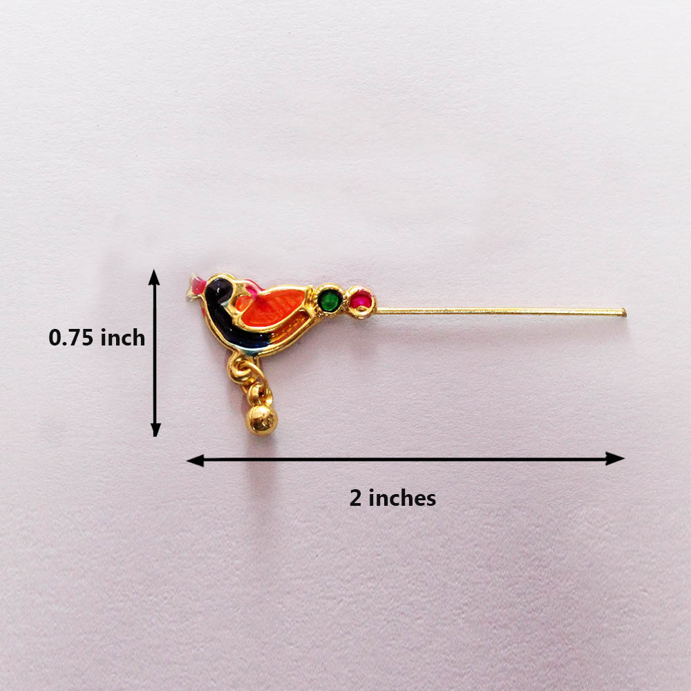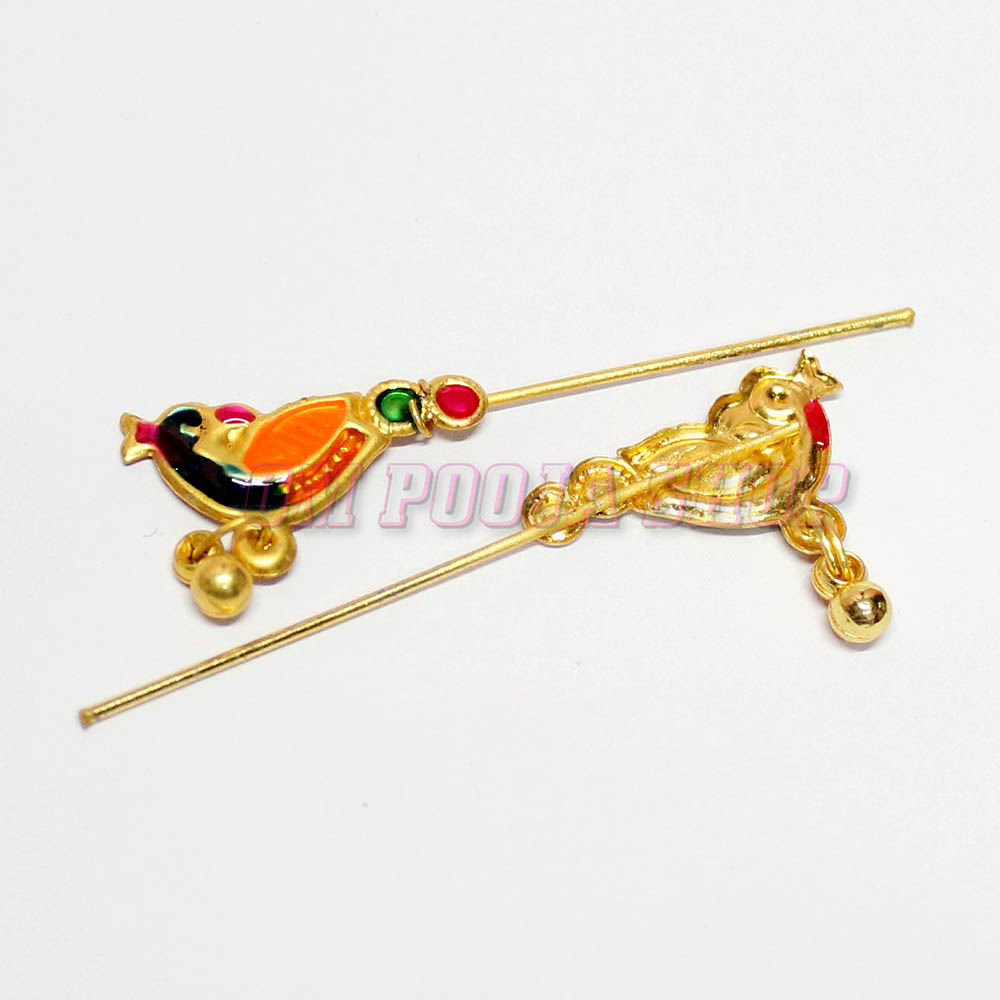 Peacock Flute for Shringar is made of copper with gold polished and meenakari work, and one ghunghuru beads hanged. This Krishna Flute for Shringar is the best and unique decoration of janmashtami festival or temple Laddu Gopla Temple decoration.