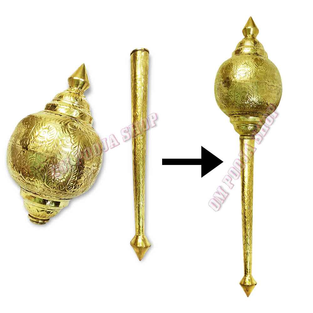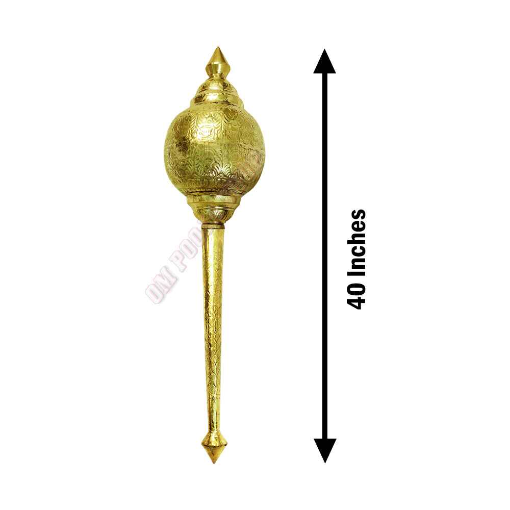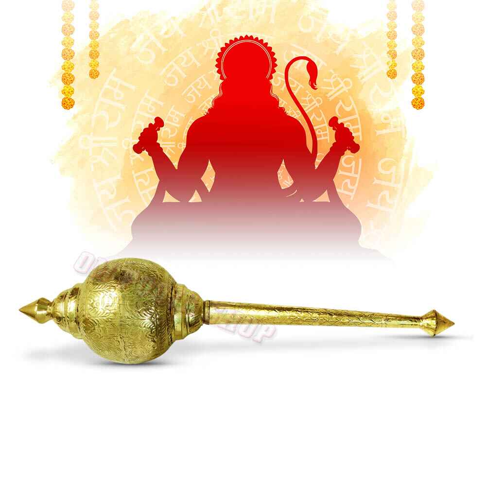 Hanuman Gada (Mace) is conveyed in the right hand of Lord Hanuman. It is a symbol of self-sovereinty, the power of administration and the power to rule. The gada is the main weapon of the Hindu God Hanuman. This is made of brass. The color of this Gada is golden.Make: Made in brassSize - 1Dimensions: 12.5 inches (H) x 3.25 inches (W)Weight: 120 grams approx----------------------------------Size - 2Dimensions: 16 inches (H) x 4.5 inches (W)Weight: 350 grams approxPackaging Weight: 1.5 kg approx&n..