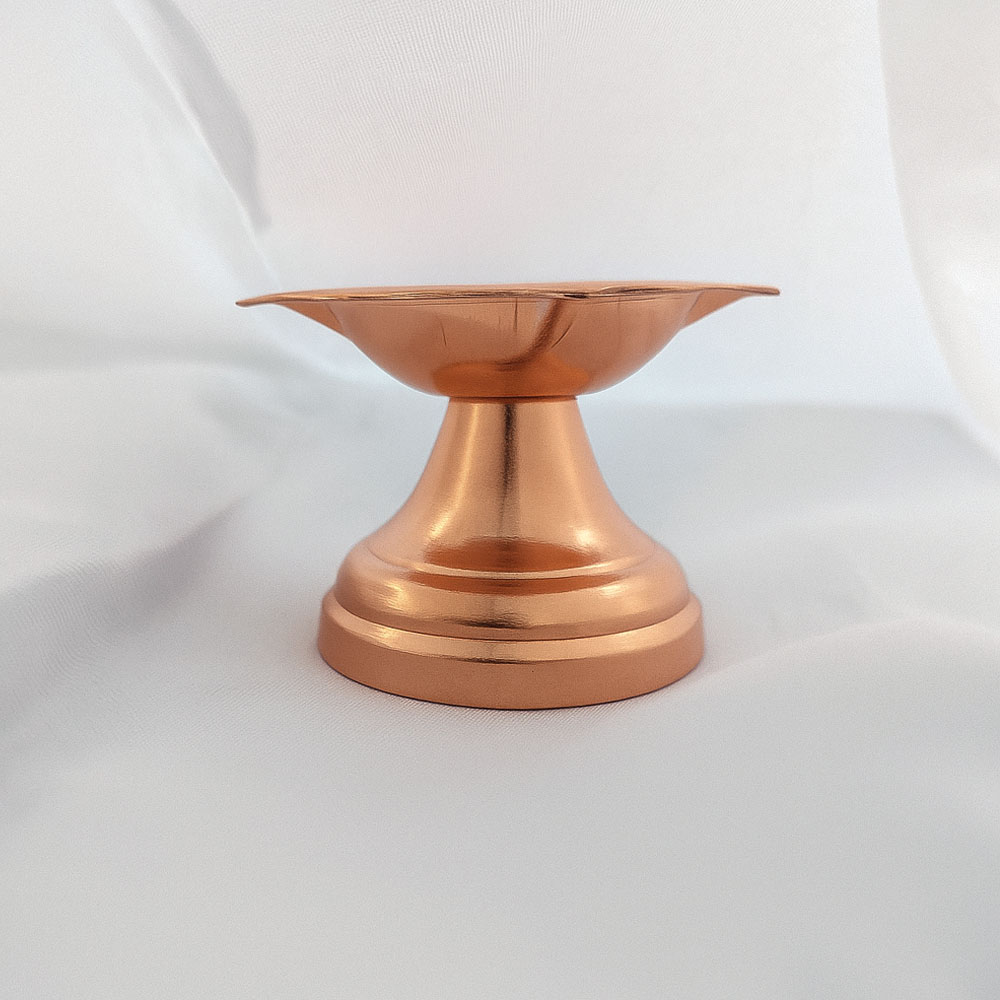 Lighting this copper diya not only enhances spiritual energy but also brings positivity, peace, and divine blessings into your home. Its sturdy base ensures stability, while the deep bowl holds sufficient oil or ghee for a long-lasting flame.