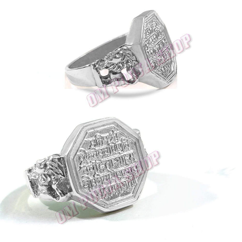 Design 4 features a bold octagonal Rajmudra face engraved in traditional Devanagari script, representing strength, justice, and unwavering faith in Dharma. Its refined structure and balanced proportions give it a commanding yet elegant presence, making it suitable for both spiritual and everyday wear.