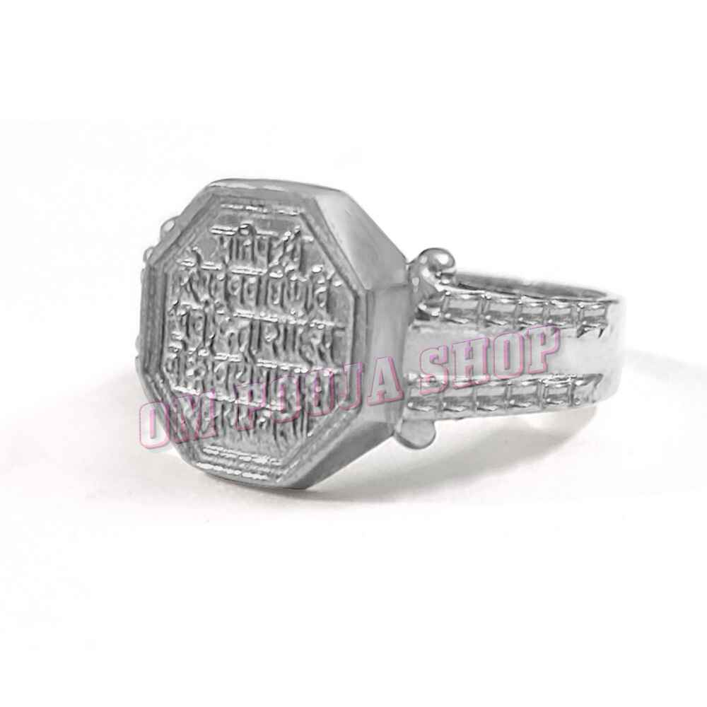 The bold octagonal signet design reflects Maharaja-era craftsmanship, giving the ring a powerful yet elegant presence. Suitable for daily wear, meditation, religious rituals, or ceremonial occasions, it blends tradition with regal sophistication.
