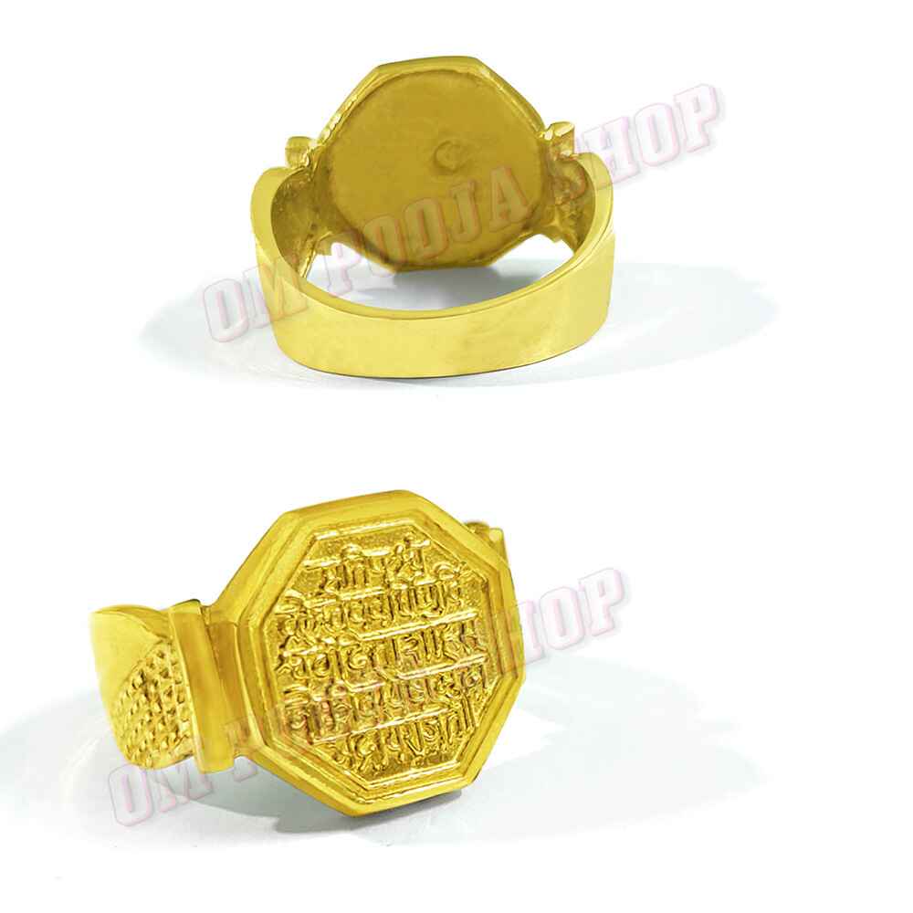 The sacred blend of five metals - this ring is believed to balance planetary energies and attract prosperity, courage, and stability. Historically worn by kings, warriors, and spiritual leaders, the Rajmudra ring signifies command, confidence, and protection from negative influences.The octagonal signet-style face enhances its regal appearance, making it suitable for daily wear, meditation, rituals, or as a powerful spiritual accessory. Its solid build and antique finish reflect timeless heritage and traditional craftsmanship.