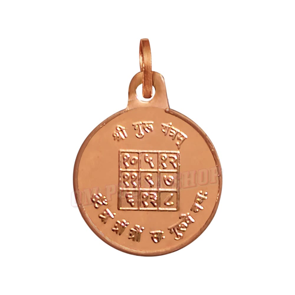 Vashikaran Yantra Locket / Round Pendant, it's made of pure copper and it's available in gold plated also. The literal meaning of 'Vashikaran' is 'to put someone under one's control'. Hence, Vashikaran Yantra is worshiped and used to attract the person you want and bring him under your influence. Vashikaran Yantra is used to enchant (magic) and bring the person you love in your life.Material: CopperDimensions: 25 mm diameterWeight: 5 grams approxMantra: || Om Namo Bhagvate Amuk Mam Vashyam Kuru ..