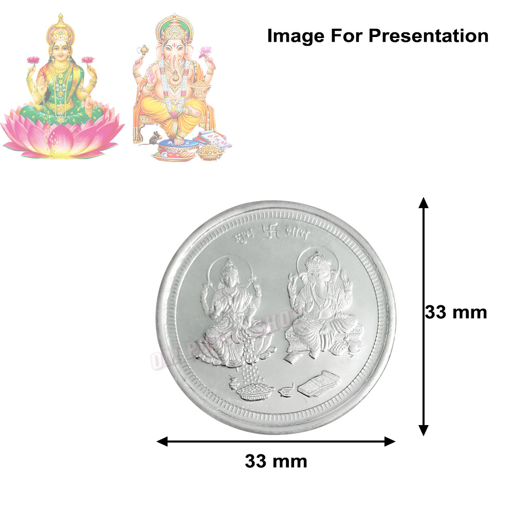 The coin of Lakshmi and Lord Ganesha is made in pure silver, the The purity of silver is 99.9%.
