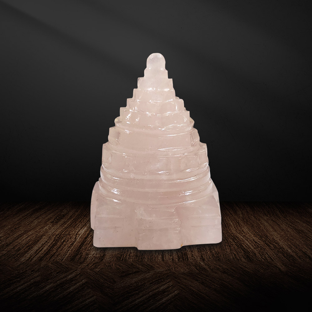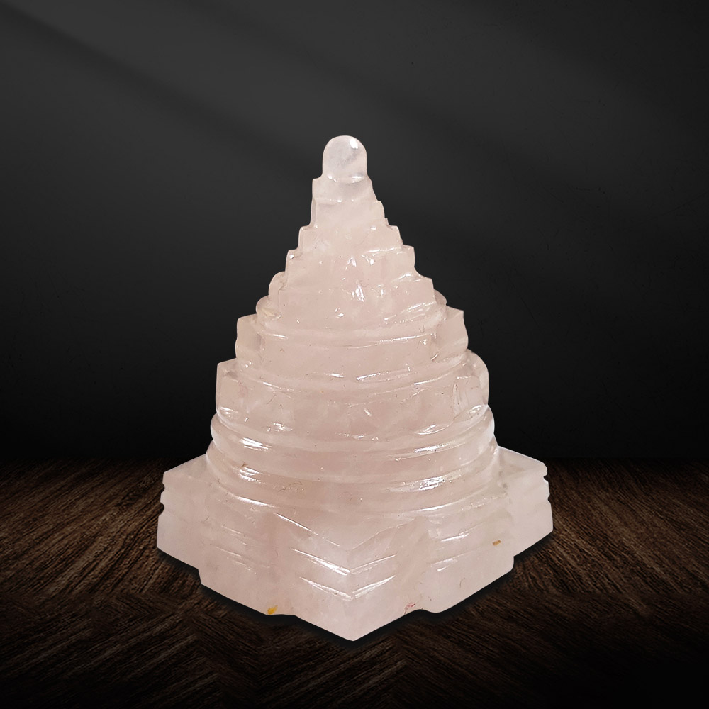 Rose Quartz Meru Shree Yantra – Natural Crystal Pyramid for Love, Harmony & Positive Energy